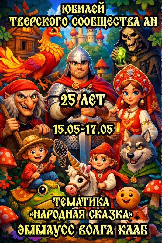 Всем привет! Приглашаем вас на двухдневный ЮБИЛЕЙ ТВЕРСКОГО СООБЩЕСТВА АН 25 ЛЕТ, который пройдет с 14.00 15 мая до 02:00 ночи 17 мая в Загородном отеле «Эммаусс Волга клаб» в сосновом бору на берегу реки Волга. Тематика мероприятия «НАродная сказка» К вашим услугам кроме самого мероприятия - бани, мангальная зона, конюшня с прогулками на лошадях и пони для детей, детская площадка, рядом музей Калиниского фронта. Всю остальную информацию Вы можете получить в чатах Тверского сообщества АН.